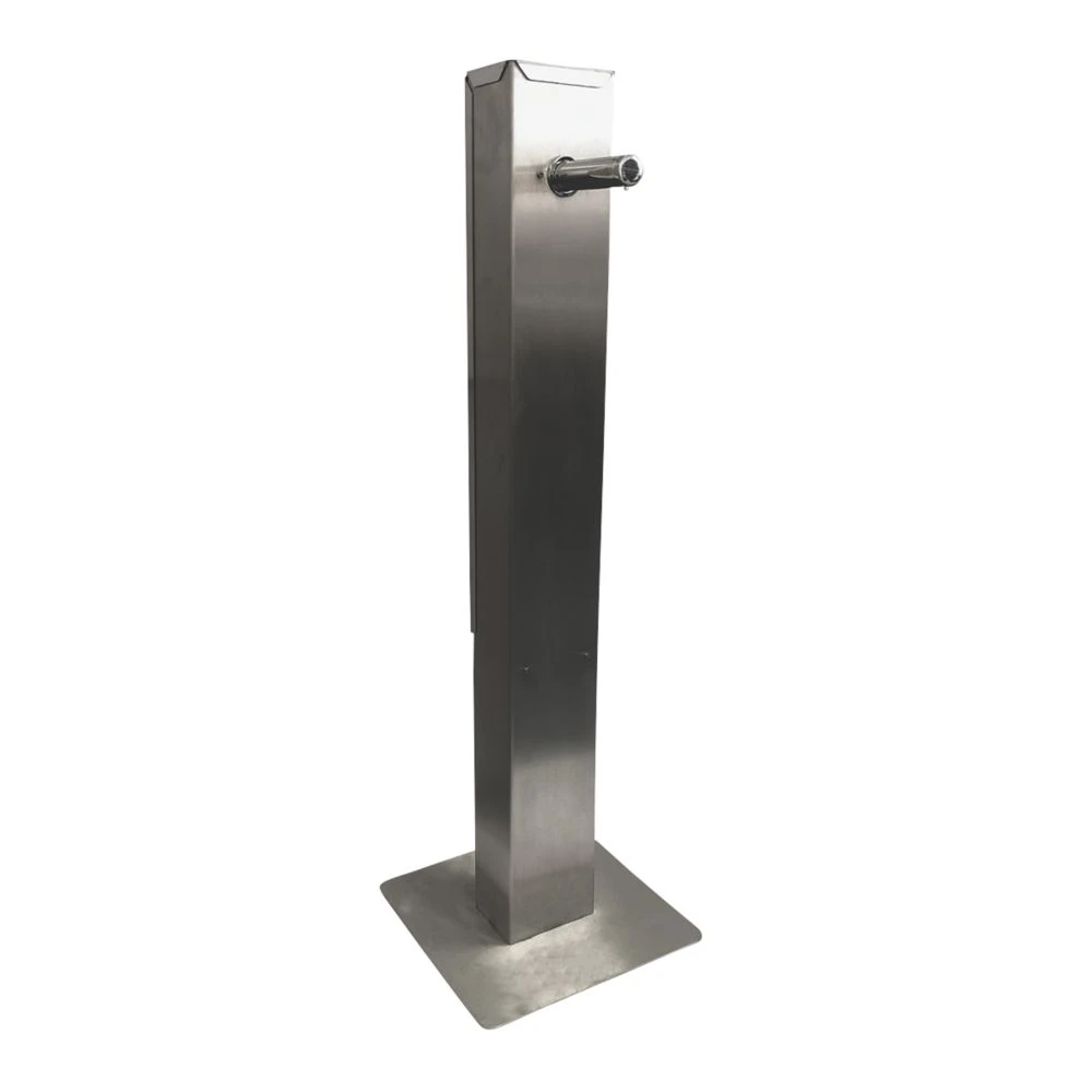 High quality, free-standing bib sanitiser dispenser with a small footprint and hygienic, touch-free operation. Battery-powered operation offers flexibility on positioning as no power connections are needed. Designed for high-use areas, the larger tank size and 1 to 3.5 ml dispensing volume allow longer refilling intervals of the 1.6Ltr refillable bottle. Suitable for non-alcoholic sanitiser and soaps. Supplied with a 5Ltr bottle of sanitiser.