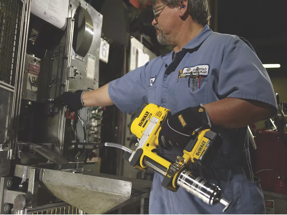 Perfect for routine lubrication. Up to twice as fast as a manual grease gun. Features a variable speed trigger for high precision application, bright LED lights for working in dark spaces, and an anti-debris filter to protect the pump mechanism from dirt and contamination. Includes purge valve to bleed excess air that can become trapped in pump valves and 1m hose for hard to reach fittings.