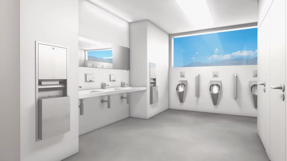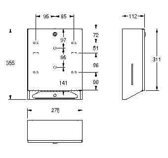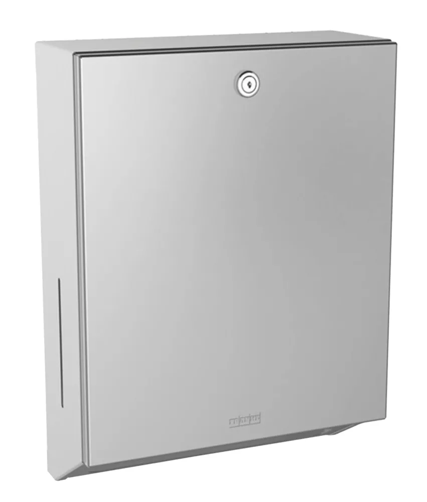 Stainless steel paper towel dispenser with inspection windows and a cylinder lock. Fixings included.