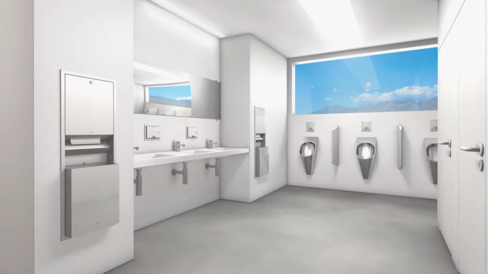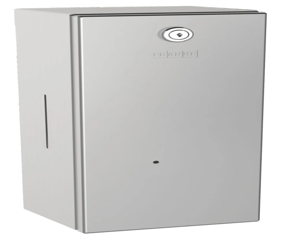 Stainless steel, touch-free soap and disinfectant dispenser with cylinder lock and LED low battery indicator. Fixings included.