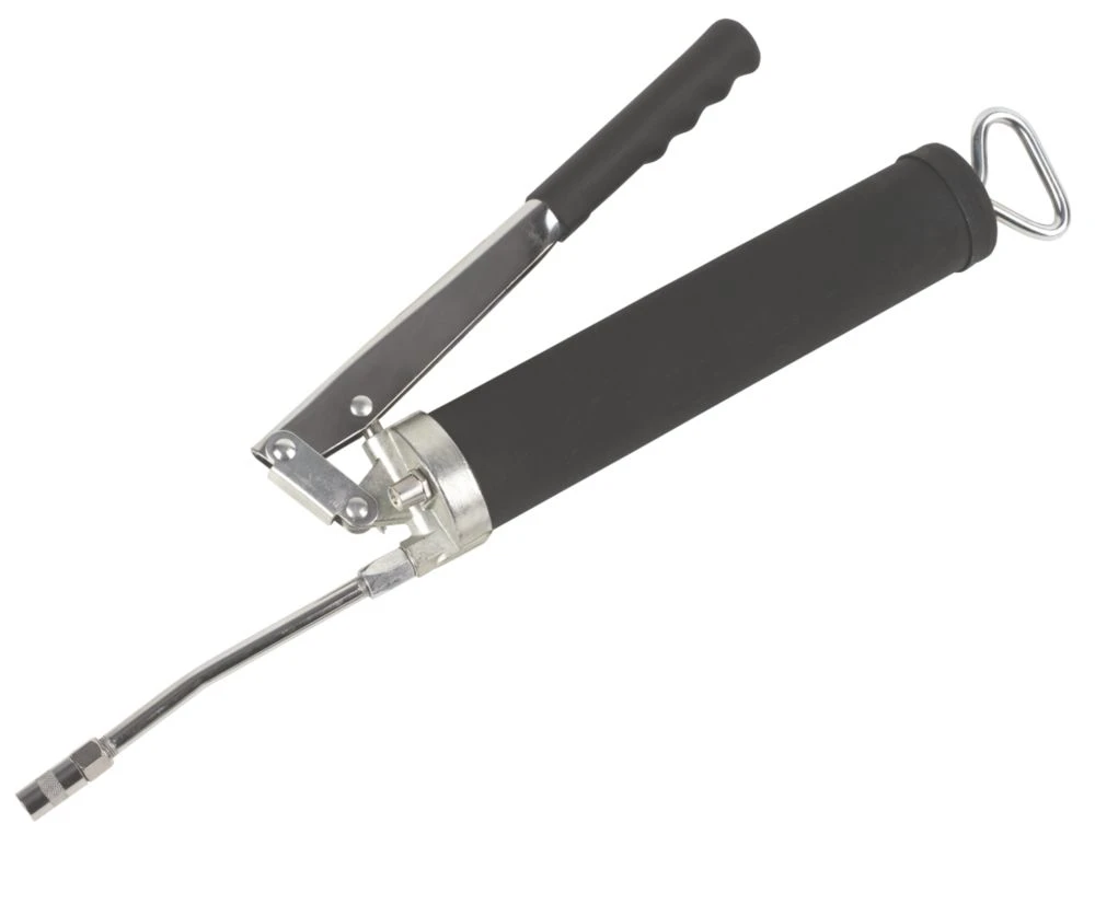 High pressure grease gun with both flexible and rigid delivery tubes for most applications. Accepts 400cc (14oz) cartridges or 500cc bulk/manual load.