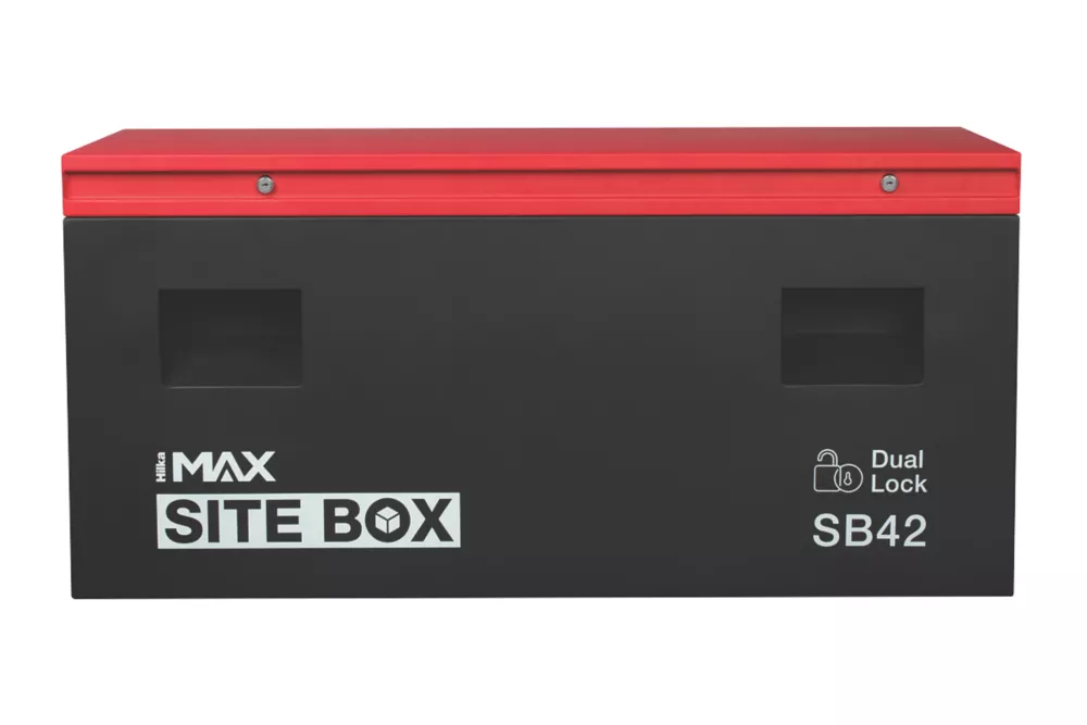 Heavy duty steel safe provides protection for tools and equipment. Double-lock system with recessed locking area and key lock in lid. Provides quick access on-site or double-locked protection. Fully welded seams and reinforced overlapping lid for protection from weather and forced entry.