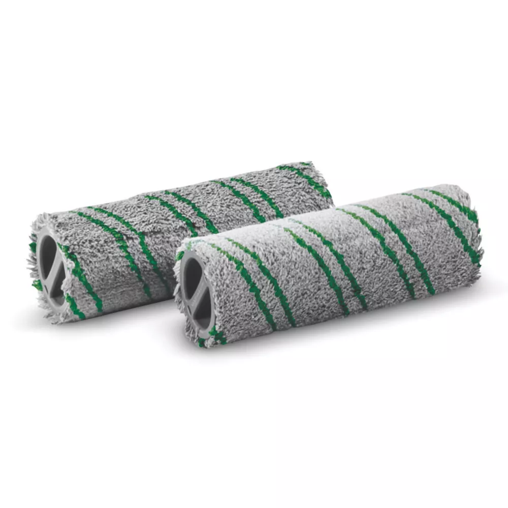 2-part stone roller set for use with Karcher BR30/1 hard floor cleaner. Features integrated bristles to tackle stubborn dirt on resistant hard floors. Washable up to 60°C.