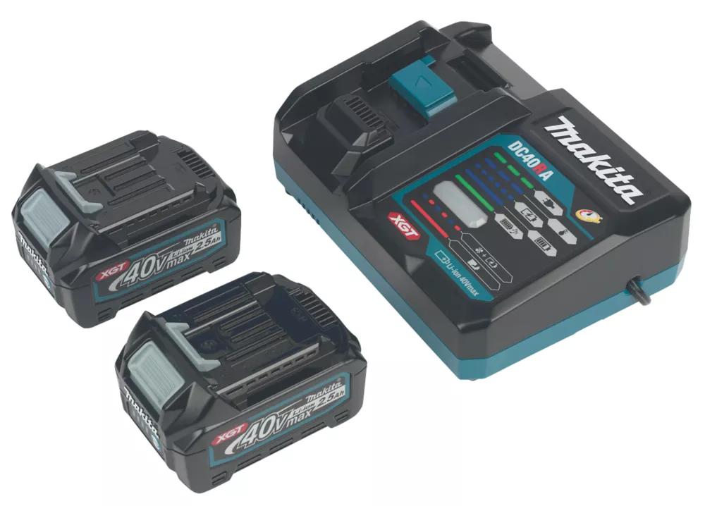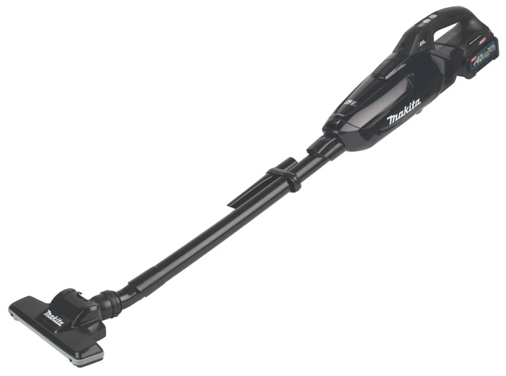 4-speed vacuum with a powerful 40V brushless motor. Features 2 x one-touch push buttons, LED work light and a 4-mode suction power selection with mode memory function. Supplied with pipe locking mechanism, disposable dust/cloth bag, anti-restart function and a battery protection circuit. Includes batteries and charger.