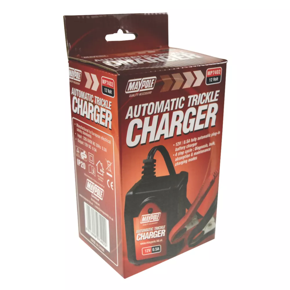 Plug-in automatic trickle charger ideal for maintenance charging. Provides protection against thermal and current overload, reverse-polarity and incorrect connection. Suitable for 12V lead and acid batteries, including wet, maintenance-free, AGM and GEL, up to 100Ah. Features dual colour LED charging status indicator. Includes ‘diagnosis’, ‘bulk’, ‘absorption’ and ‘maintenance’ charging modes.