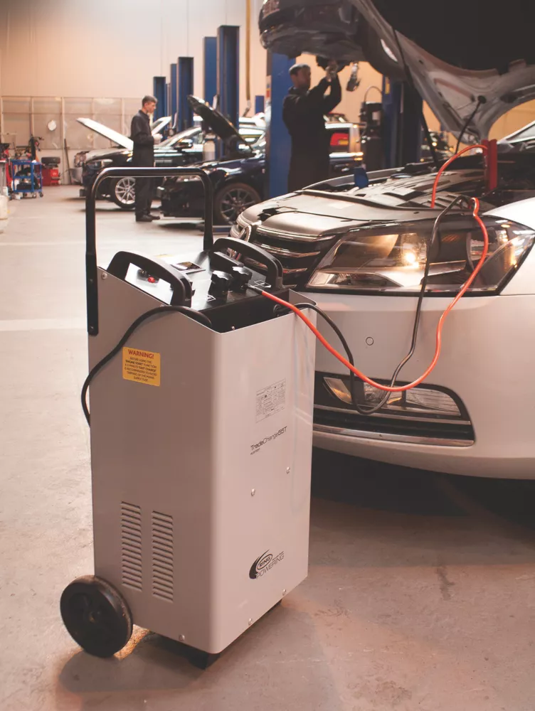 12 / 24V dual voltage heavy duty metal case charger with high output jump start function. Suitable for use in garages or workshops and commercial vehicle depots.