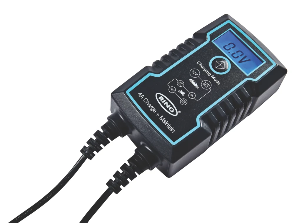 Keeps a car battery in good condition without overcharging. Large LCD display clearly shows the charging process and voltage. Recommended for all battery types (including stop/start) and suitable for 6V and 12V vehicles with up to a 4A charge rate. Simple to use as it only has one button to start the 7-stage charging process, avoiding any complicated settings. The battery will be maintained with the charger automatically adjusting to long-term maintenance mode when the car battery is full. Supplied with quick connectors for charging and O-ring terminals for long-term connection.