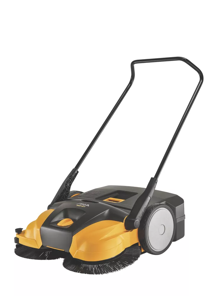 Lightweight and maintenance-free push sweeper designed to remove dust, dirt, debris and leaves from hard or concrete surfaces such as driveways, paths and patios. No noise operation. Fitted with 275mm rubber wheels for enhanced traction and 2 radial brushes in front of the roller to push the debris into the centre for better cleaning results. Easy to handle with 8 adjustable brush height positions. Ideal for cleaning large residential and public areas.
