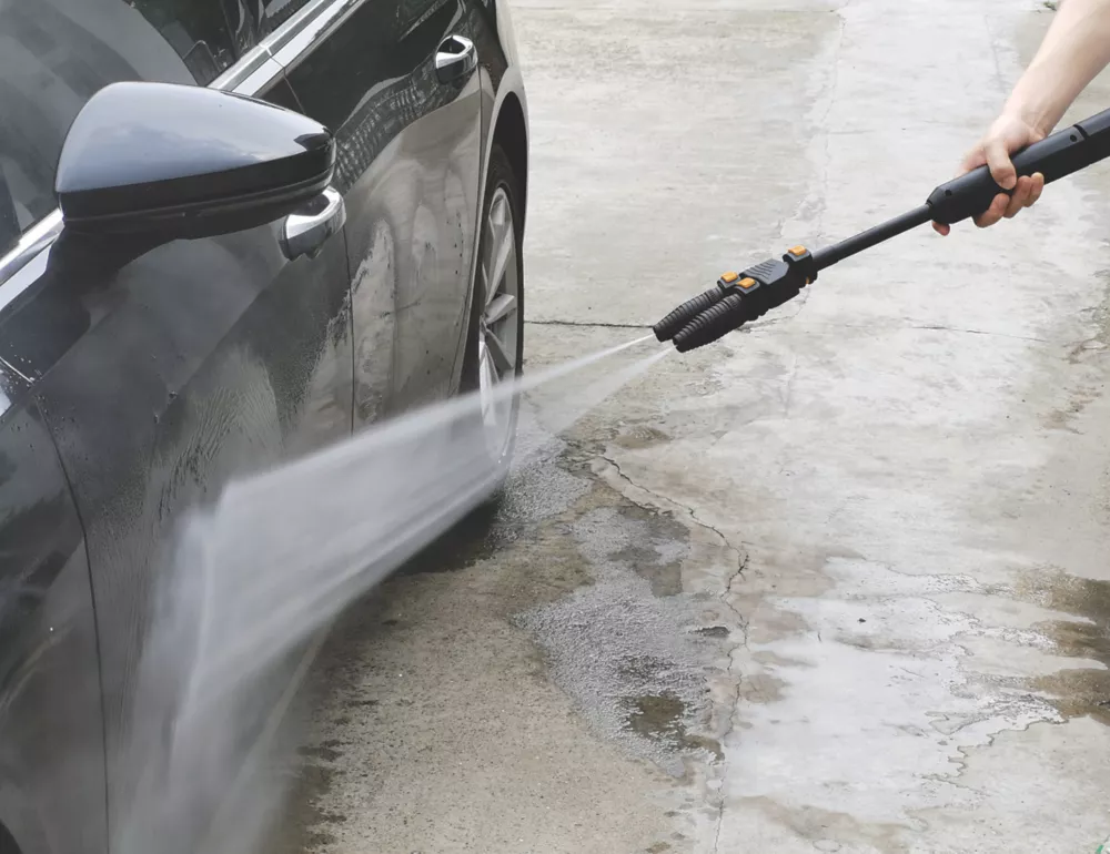 Easy to manoeuvre pressure washer with quick lock and release system. Features 2 pivoting wheels and independent wheel brakes. Suitable for the cleaning of vehicles, machines, boats and masonry. Removes stubborn dirt using clean water and biodegradable chemical detergents. Supplied with 10m hose.