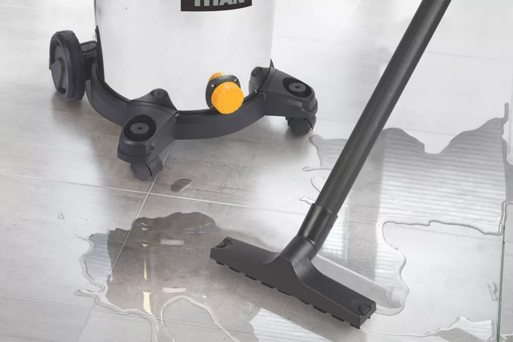 Robust vacuum cleaner for wet and dry use. Ideal for cleaning up dust, debris, sludge or water. Features power take-off facility, heavy duty stainless steel tank and drain hole on the front of the vacuum for easier emptying. Supplied with 5.5m cable, 2.4m hose and 2 extension tubes giving a total reach of over 9m. Easy to store and transport with 2 easy roll castors and 2 sturdy fixed wheels at the rear. On-board tool storage facility. Can be used with or without dust bags.