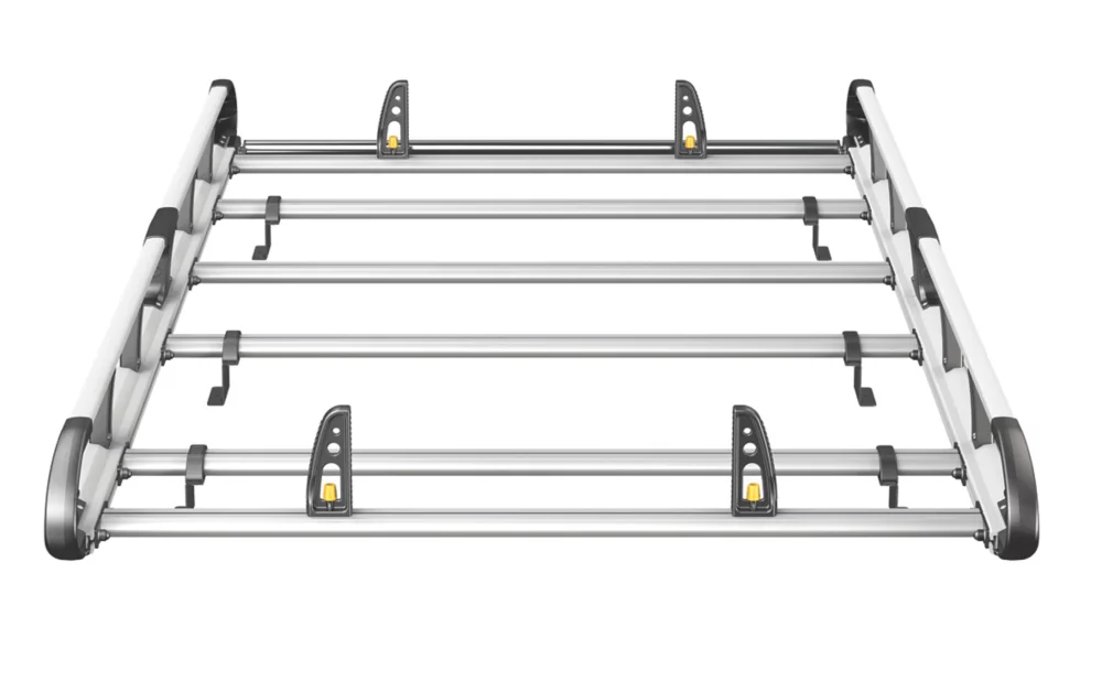 Lightweight aluminium construction. Aerodynamic profile minimises wind noise and drag. Features t-slot system within every cross bar enabling the use of load stops, eye bolts and ratchet straps for securing loads safely to the roof. Plastics are UV-treated to resist fading. Fitting requires drilling of roof. Maximum load must be in accordance with the vehicle manufacturer’s load bearing capacity.