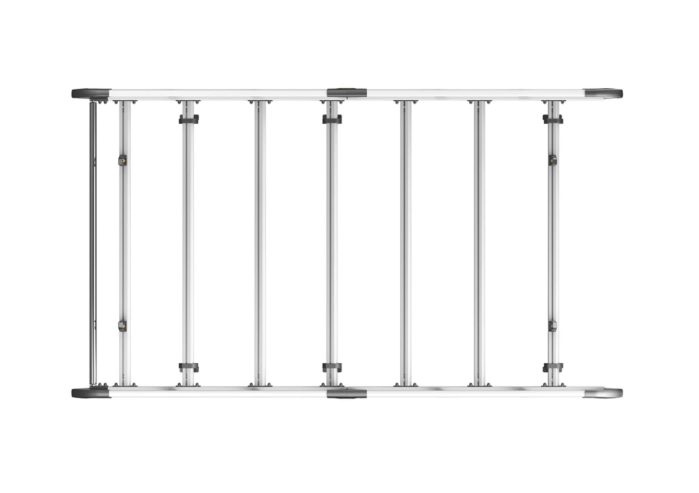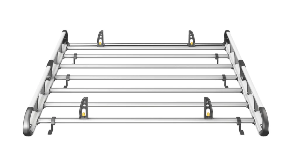 Lightweight aluminium construction. Aerodynamic profile minimises wind noise and drag. Features t-slot system within every cross bar enabling the use of load stops, eye bolts and ratchet straps for securing loads safely to the roof. Plastics are UV-treated to resist fading. Maximum load must be in accordance with the vehicle manufacturer’s load bearing capacity.