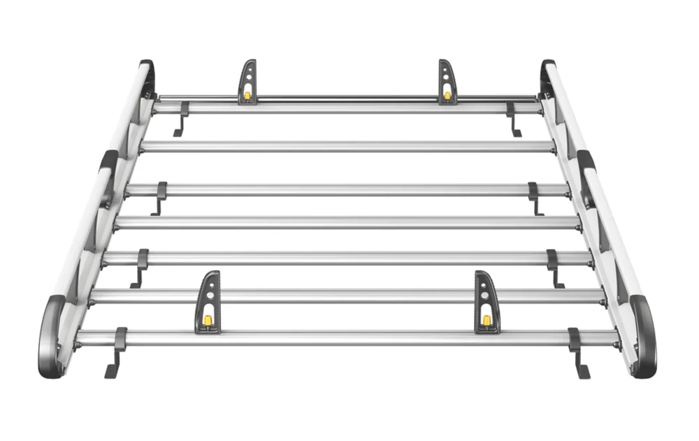 Lightweight aluminium construction. Aerodynamic profile minimises wind noise and drag. Features T-slot system within every cross bar enabling the use of load stops, eye bolts and ratchet straps for securing loads safely to the roof. Plastics are UV-treated to resist fading. Maximum load must be in accordance with the vehicle manufacturers load-bearing capacity.