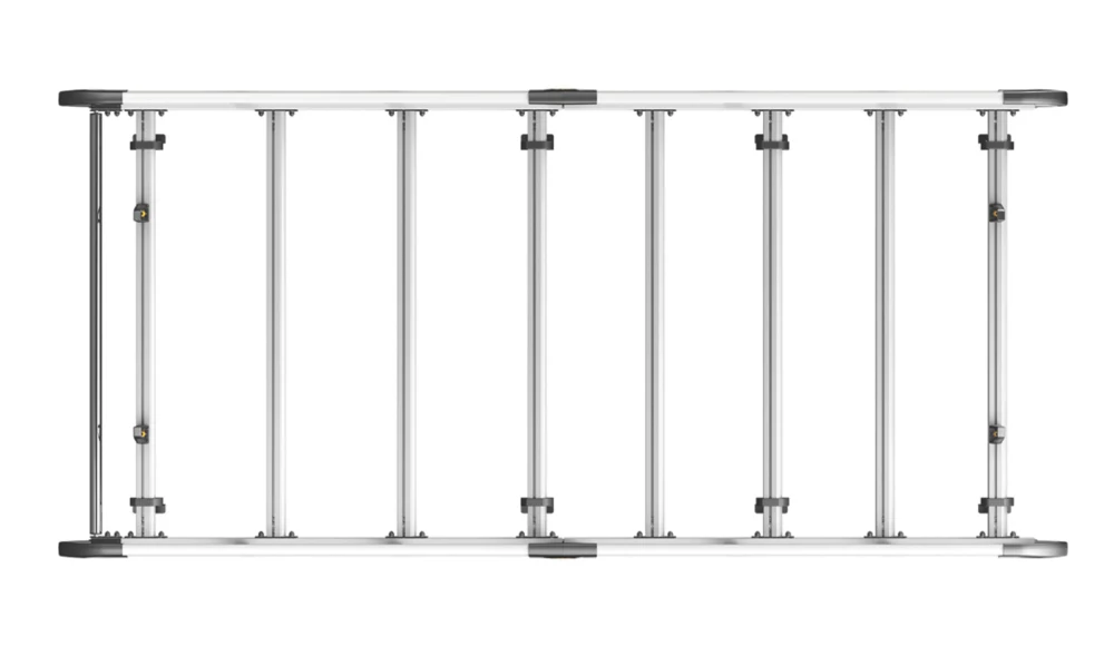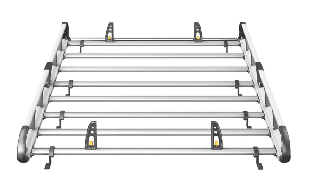 Lightweight aluminium construction. Aerodynamic profile minimises wind noise and drag. Features t-slot system within every cross bar enabling the use of load stops, eye bolts and ratchet straps for securing loads safely to the roof. Plastics are UV-treated to resist fading. Maximum load must be in accordance with the vehicle manufacturer’s load bearing capacity.