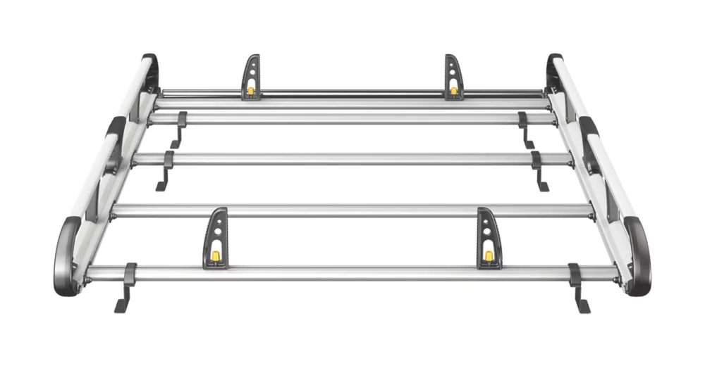 Lightweight aluminium construction. Aerodynamic profile minimises wind noise and drag. Features t-slot system within every cross bar enabling the use of load stops, eye bolts and ratchet straps for securing loads safely to the roof. Plastics are UV-treated to resist fading. Maximum load must be in accordance with the vehicle manufacturer’s load bearing capacity.