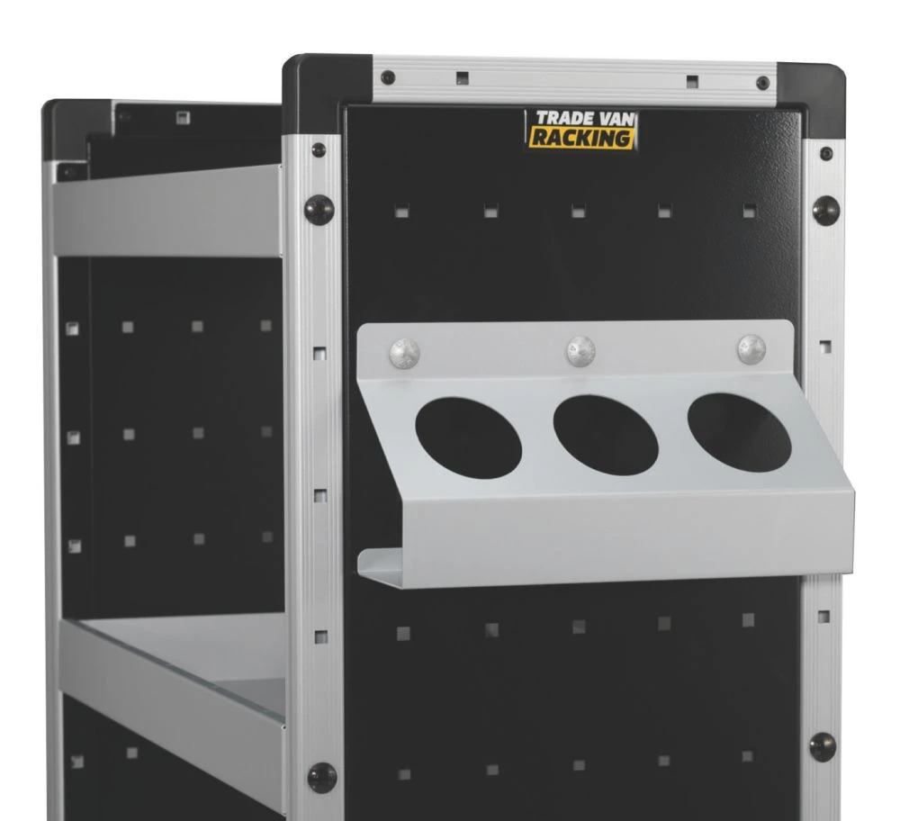 Spray can holder which fits to the Trade Van Racking side panels. Allows for easy access and can be positioned at a variety of heights.