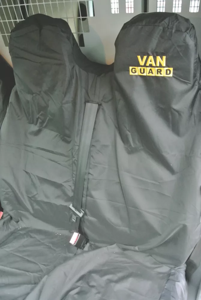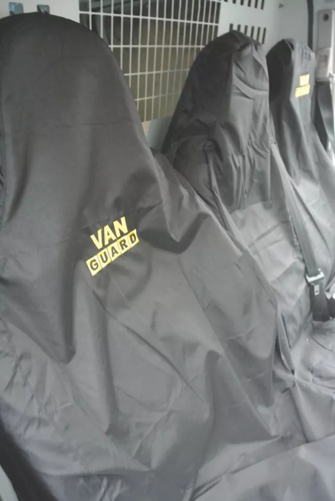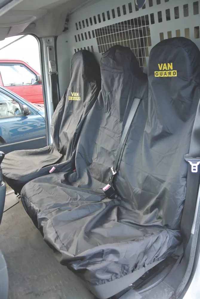 Made from tough waterproof nylon materials. Includes single and double-seat covers. Resistant to dirt. Designed to fit over arm rests and head restraints. Easily cleaned with damp cloth or sponge. Fits most vans. Not suitable for seats with air bags. Single and double covers supplied.