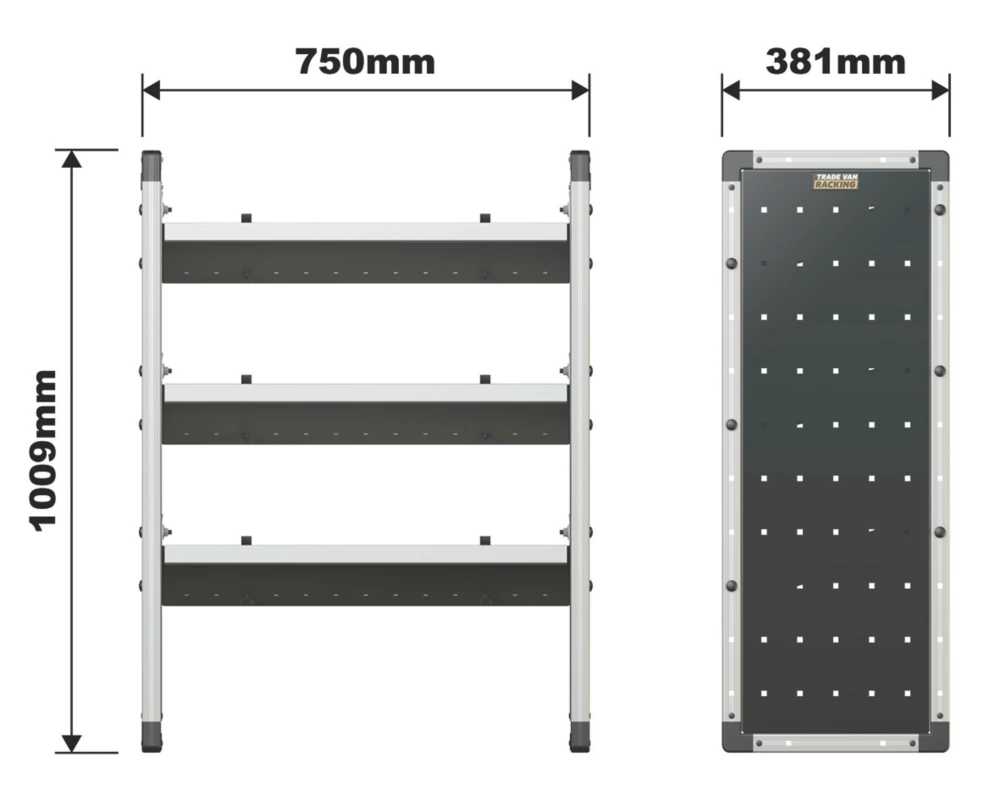 Quick fit and easy to install Universal Trade Van Racking single unit. Provides a lightweight, strong and flexible solution for effectively storing and organising power tools and components.