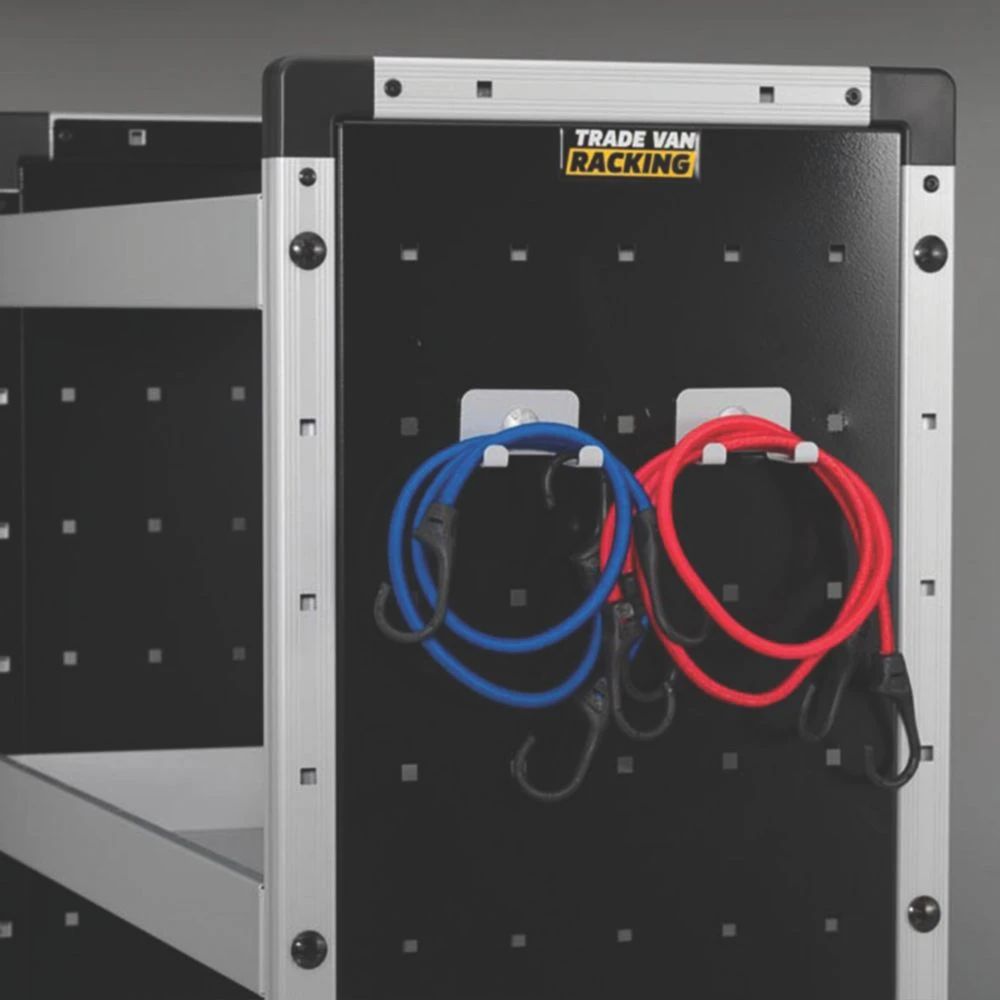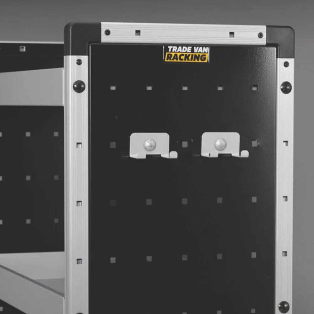 Fits easily to the Trade Van Racking side panels and can be positioned and configured for the users liking. Allows for easy storage and transportation of lightweight goods and materials. Steel construction. Fixings included.