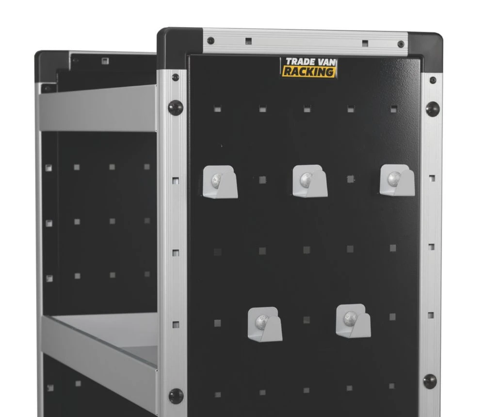 Fits easily to the Trade Van Racking side panels and can be positioned and configured for the users liking. Allows for easy storage and transportation of lightweight goods and materials. Steel construction. Fixings included.
