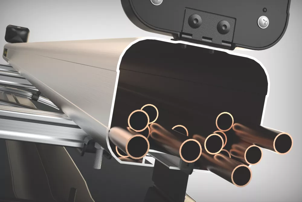 Can carry up to 36 x (2m x 15mm) pipes. Protects pipes from damage. Supplied with 4 x keys, 2 x universal brackets and fixings.