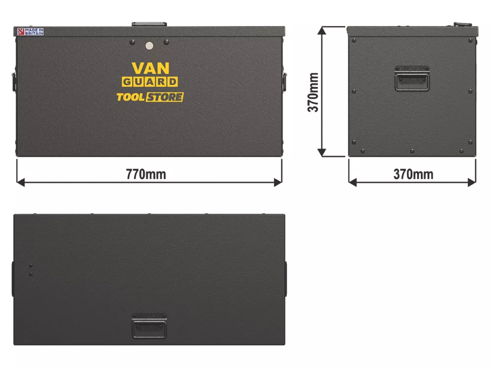 Designed and manufactured in Britain. Ideal for storing tools inside vans and trucks. Finished in a tough, textured, powder coating with 7mm pre-drilled holes to enable fixing to the van. Supplied with disc lock and 2 x keys