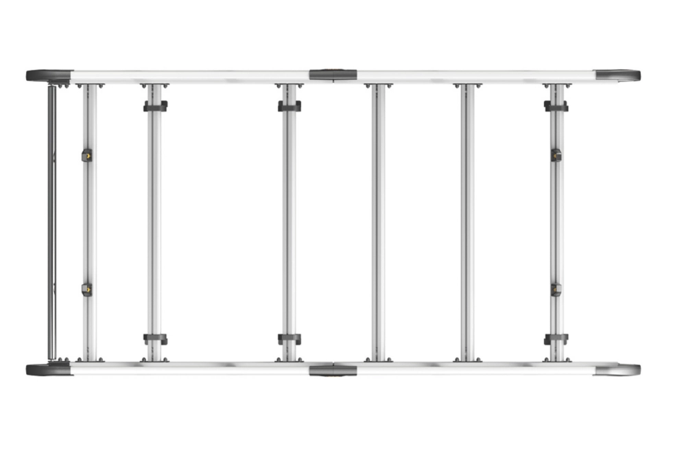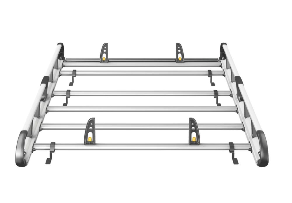 Lightweight aluminium construction. Aerodynamic profile minimises wind noise and drag. Features t-slot system within every cross bar enabling the use of load stops, eye bolts and ratchet straps for securing loads safely to the roof. Full length rear roller provided, designed for easy loading and unloading. Plastics are UV-treated to resist fading. Crash tested to maximum carrying capacity at 20G. Maximum load must be in accordance with the vehicle manufacturer’s load bearing capacity.