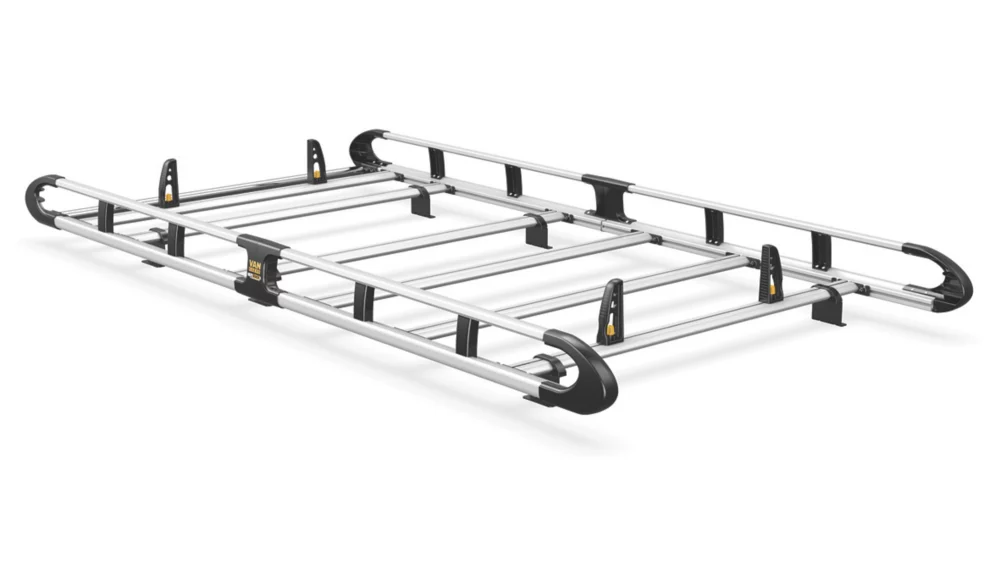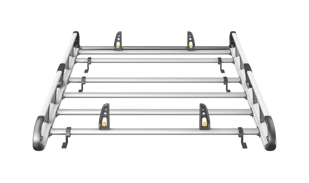 Lightweight aluminium construction. Aerodynamic profile minimises wind noise and drag. Features t-slot system within every cross bar enabling the use of load stops, eye bolts and ratchet straps for securing loads safely to the roof. Full length rear roller provided, designed for easy loading and unloading. Plastics are UV-treated to resist fading. Crash tested to maximum carrying capacity at 20G. Maximum load must be in accordance with the vehicle manufacturer’s load bearing capacity.