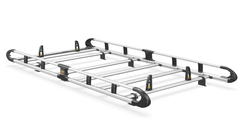 Lightweight aluminium construction. Aerodynamic profile minimises wind noise and drag. Features t-slot system within every cross bar enabling the use of load stops, eye bolts and ratchet straps for securing loads safely to the roof. Full length rear roller provided, designed for easy loading and unloading. Plastics are UV-treated to resist fading. Crash tested to maximum carrying capacity at 20G. Maximum load must be in accordance with the vehicle manufacturer’s load bearing capacity.