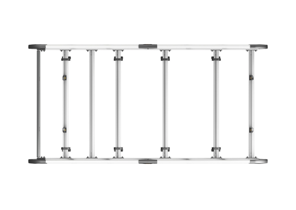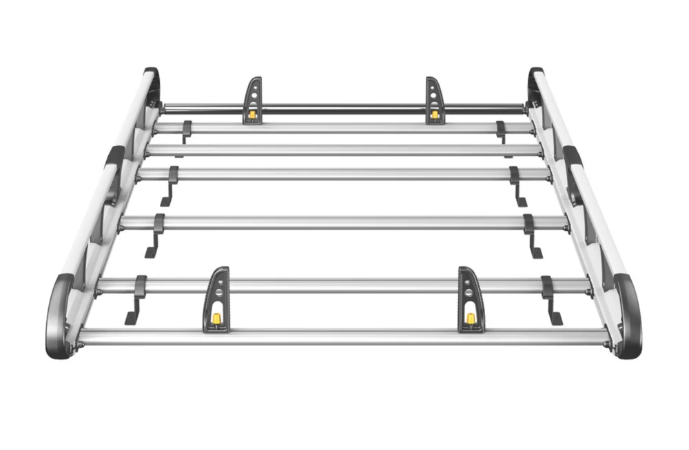Lightweight aluminium construction. Aerodynamic profile minimises wind noise and drag. Features t-slot system within every cross bar enabling the use of load stops, eye bolts and ratchet straps for securing loads safely to the roof. Full length rear roller provided, designed for easy loading and unloading. Plastics are UV-treated to resist fading. Crash tested to maximum carrying capacity at 20G. Maximum load must be in accordance with the vehicle manufacturer’s load bearing capacity.