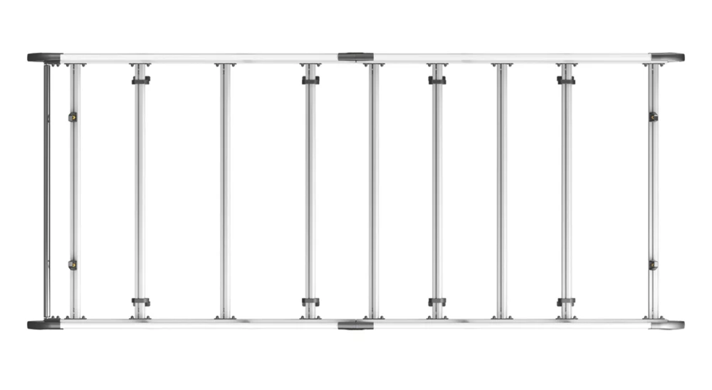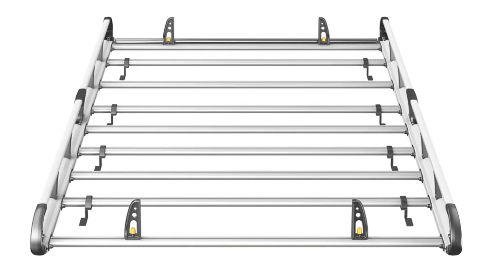 Lightweight aluminium construction. Aerodynamic profile minimises wind noise and drag. Features t-slot system within every cross bar enabling the use of load stops, eye bolts and ratchet straps for securing loads safely to the roof. Plastics are UV-treated to resist fading. Maximum load must be in accordance with the vehicle manufacturer’s load bearing capacity.
