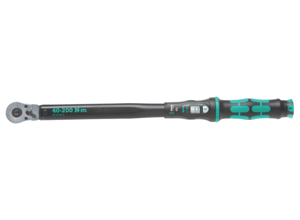 Robust, click-torque wrench with ½” square drive for bolting applications. Ergonomic 2-component handle for comfort and grip. 45-tooth reversible ratchet mechanism. Easy setting and saving of desired torque values with audible and tactile clicks when adjusting the easy-to-read scale. Torque value secured via locking system, avoiding any accidental adjustment. When the set torque value is reached the release mechanism triggers, preventing any chance of the desired torque value from being exceeded. Precise to ± 3%. For accurate clockwise, torque-controlled, tightening.